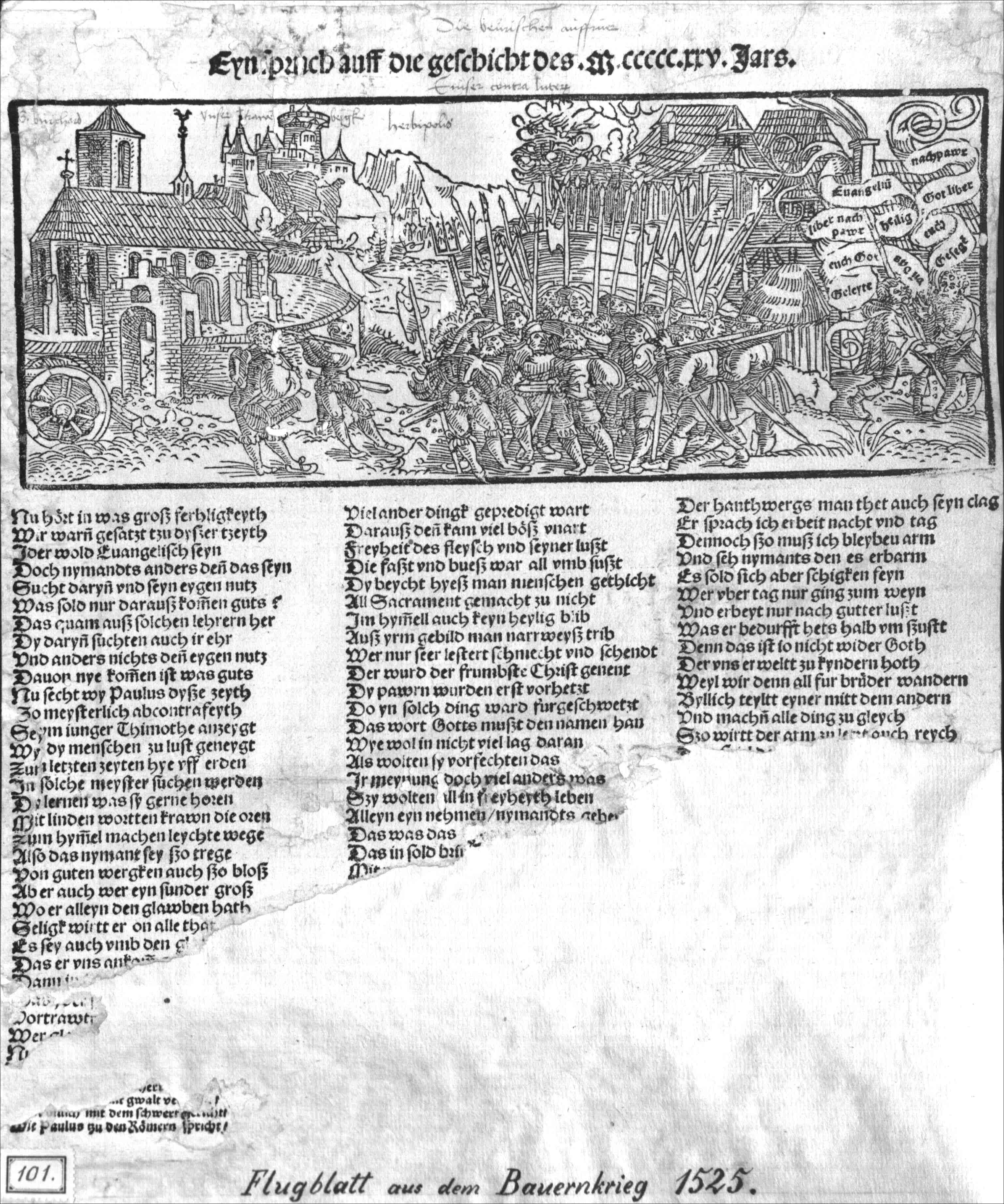 Der sog. "Bauernkrieg" ist wie kein anderer Krieg zuvor auch literarisch bestimmt gewesen und wurde auch auf literarischer Ebene geführt (H. Brackert, Literatur und Bauernkrieg, 1975). Den Flugschriften kam dabei die entscheidende Rolle zu: Sie ermöglichten es u.a., die Forderungen des gemeinen Mannes überregional zu verbreiten, lokale Aktivitäten und Argumente zu koordinieren und Nachrichten über das aktuelle Geschehen schnell weiterzugeben.